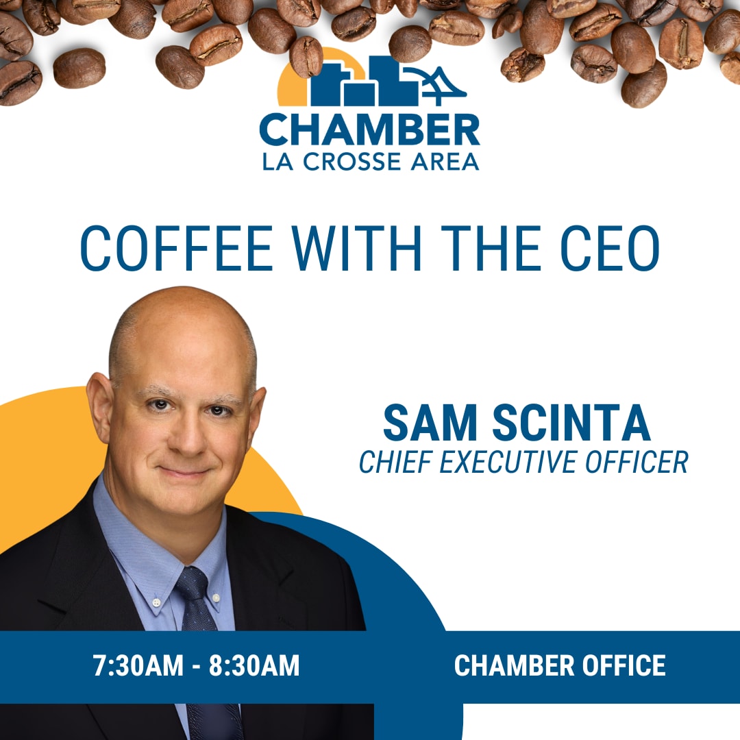 Join me every other Thursday from 7:30-8:30am for "Coffee with the CEO," a casual opportunity for members to discuss the Chamber and how we can all make the La Crosse region greater. You bring the questions...I'll bring the coffee.